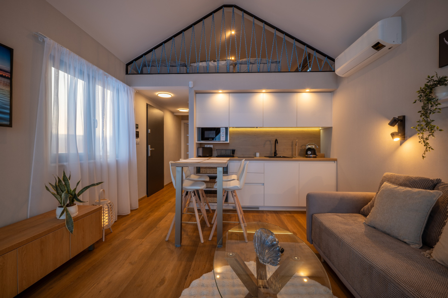 Marina Cabin House prináša na ploche 64m2 atmosféru tradičnej chalupy – spomienky na letá pri vode či zasnežené zimy v prírode – doplnenú o moderný komfort, kvalitné vybavenie a služby rezortu, ktoré robia dovolenku skutočne bezstarostnou. „Cabiny“, ako ich u nás voláme, sú svetlé, priestranné a pripravené na chvíle, ktoré si chcete vychutnať v kruhu svojich najbližších.